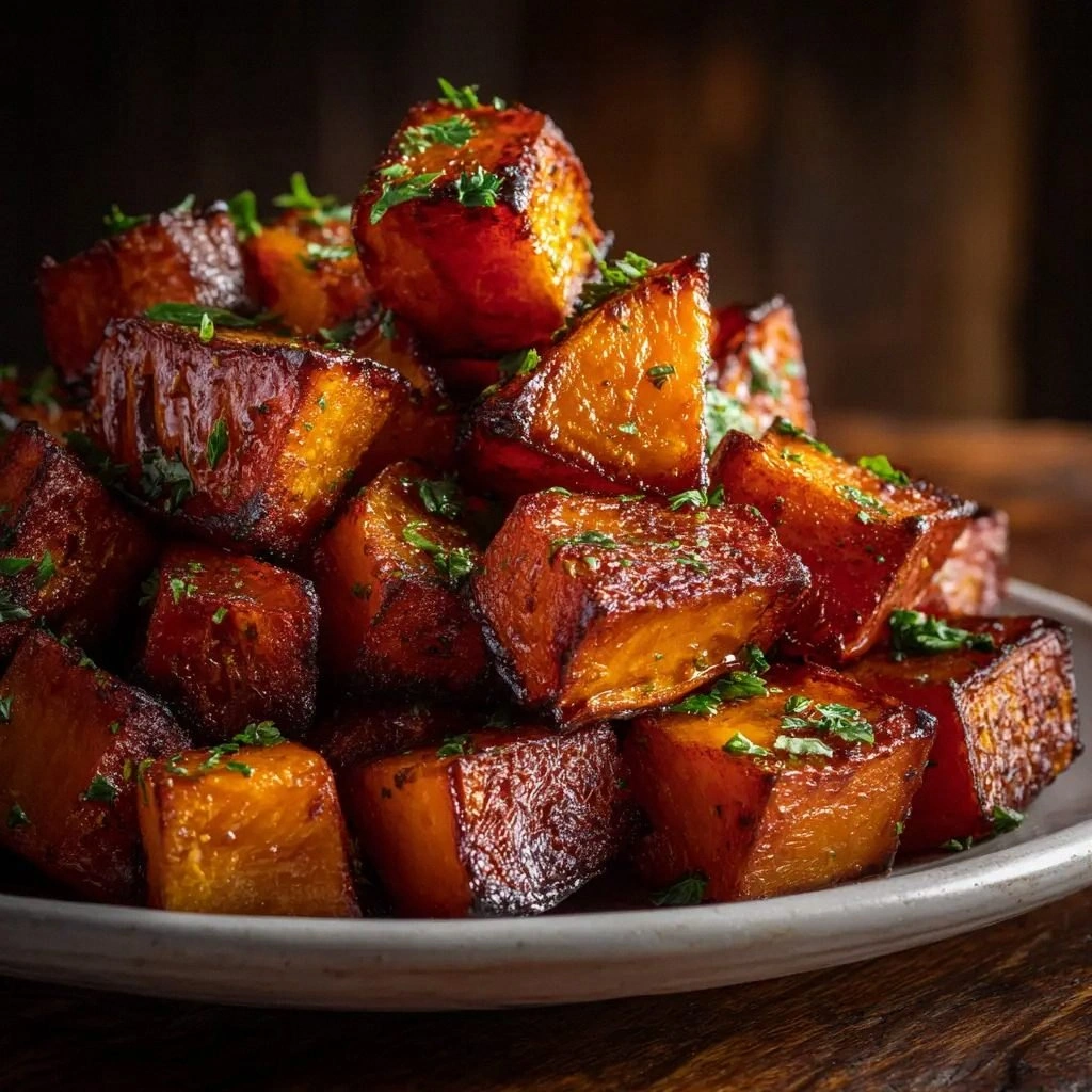 Picture the aroma of cinnamon and nutmeg rising from the oven, mingling with the earthy scent of roasted squash. The sound is a gentle crackle, like a campfire in a quiet kitchen. When you pull the tray out, a golden, glossy coating clings to each piece, and the edges are crisp enough to snap with a satisfying crunch. The first bite is a burst of caramelized sweetness, followed by a subtle heat from the pepper and a deep, comforting warmth from the spices. I swear, that first bite could make a grown‑up cry with joy.