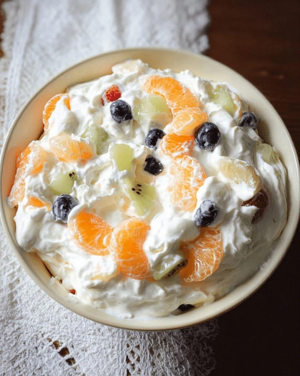 It’s not just about the flavor; it’s the texture that makes this salad a game-changer. Imagine biting into a juicy orange segment that bursts with juice, followed by a silky swirl of whipped cream that coats your tongue like a velvet blanket. The contrast of the crisp blueberries and the soft pineapple chunks adds a playful crunch that feels like a gentle pop against the smoothness of the cream. And the subtle saltiness lifts every bite, turning each spoonful into a symphony of sensations. If you’ve ever tried a fruit salad that felt like a bland salad, you’ll understand why I’m so excited about this version.